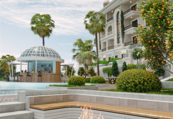 Общая площадь территории на холме составляет 15 350 м2. Некоторые из наших квартир имеют собственный сад и бассейн. Типы квартир в нашем проекте 1+1, 2+1, 3+1 «дуплексы» с садом и без, 2+1 дуплекс с садом и без.