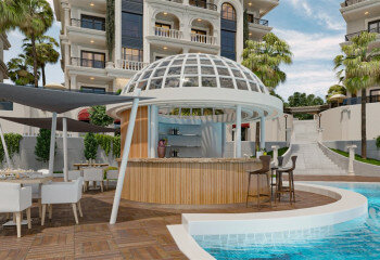 Соседние стены также будут звукоизолированы. Окна всех наших апартаментов будут выходить на Средиземное море, порт и Таврские горы. Для комфорта, уединения, отдыха и спокойствия , сады и социальные объекты расположены на разных уровнях территории комплекса.