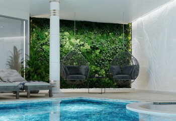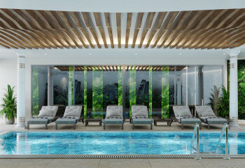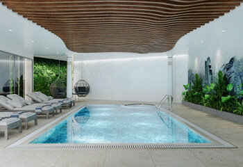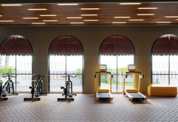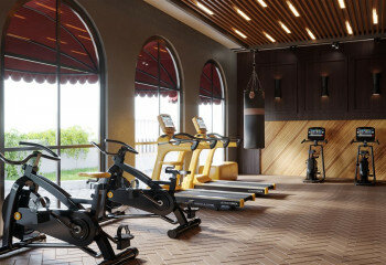 · Тренажерный зал · Оздоровительный и СПА-центр · Ресторан · Игровая комната · Кинозал · Теннисный корт · Детский клуб · 2 бассейна олимпийских размеров · Детские бассейны |